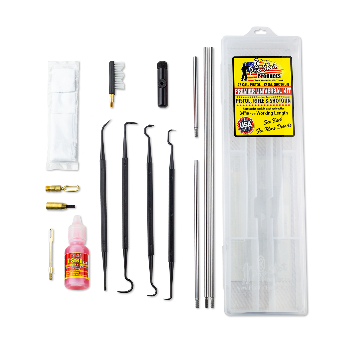 Universal pistol cleaning kit, .22cal & up, 6.5in.
